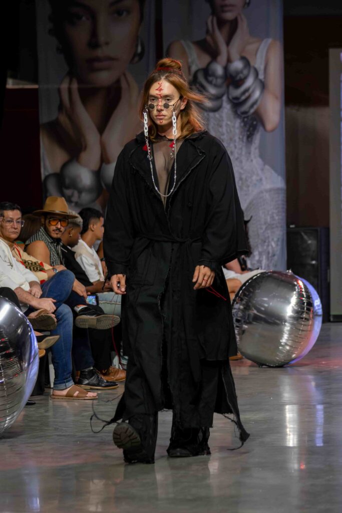 Cada prenda ha sido intervenida con técnicas textiles que resignifican su historia: materiales reciclados, retazos olvidados y tejidos recuperados se entrelazan para dar vida a siluetas renovadas. El resultado son piezas únicas, transformadas con una estética oscura y experimental que conserva la esencia de lo que fueron, pero revelando un nuevo destino en su segunda vida.